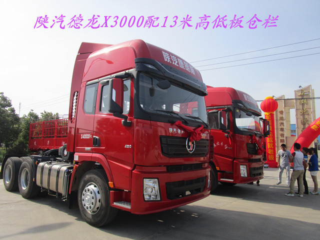 陜汽德龍X3000高端牽引車“全面領先成就老板,產品突破服務超越!陜汽德龍X3000配歐陽華俊13米高低板倉欄式半掛車,在路上行駛,猶如一道亮麗的風景線,吸引了無數的愛車卡友們。