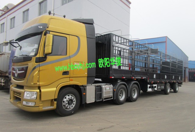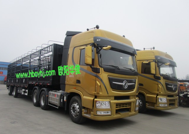 兩臺(tái)13米高低板全新倉(cāng)欄半掛車完工交付啦,配兩臺(tái)東風(fēng)天龍牽引車土豪金色的,美到驚艷!此車是2.2米高,用的是廣東的富華車橋,客戶要求做的是亮灰色,整體非常壯觀。---《湖北歐陽(yáng)華俊專用汽車有限公司歡迎您!》