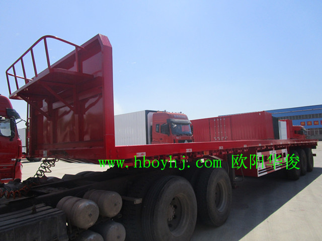 發布日期:2016-09-05 11:46:55 編輯:歐陽華俊 瀏覽量:239213米直梁平板半掛車完工交付,祝湖南益陽的伍師傅一路順風,賺錢滿滿!伍師傅用13米的鎖桿式倉欄車車兌換的這臺13米直梁式平板半掛車。此13米平板直梁半掛車為尺寸:13米長×2.5米寬×2.9米前站板離地高,感謝所有的司機朋友們,對歐陽華俊掛車廠的關注與支持。《湖北歐陽華俊專用汽車有限公司歡迎您!