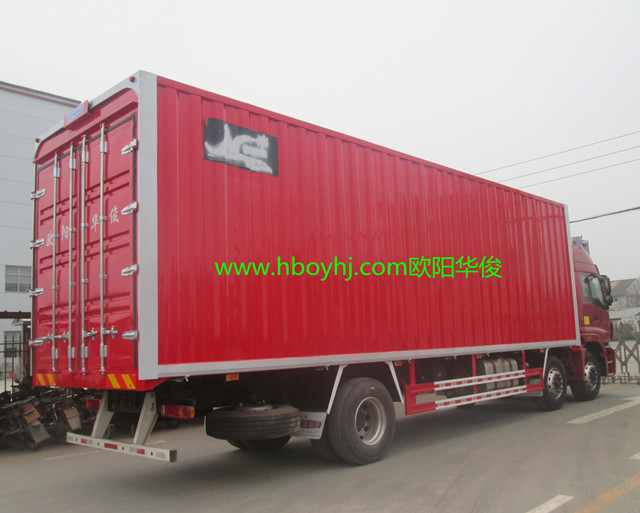 湖北歐陽華俊專用汽車有限公司生產(chǎn)的翼開啟廂式車,舉升高度可超過車廂,接近90度角。此翼開啟廂式車的尺寸為:9.6米長×2.5米寬×2.5米高,祝訂車老板生意興隆天天旺,財源廣進天天發(fā)!