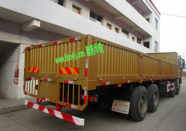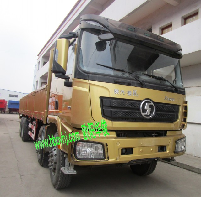 歐陽華俊80公分高欄板9.6米平板車廂配陜汽德龍X3000土豪金前四后八車圖片(4)
