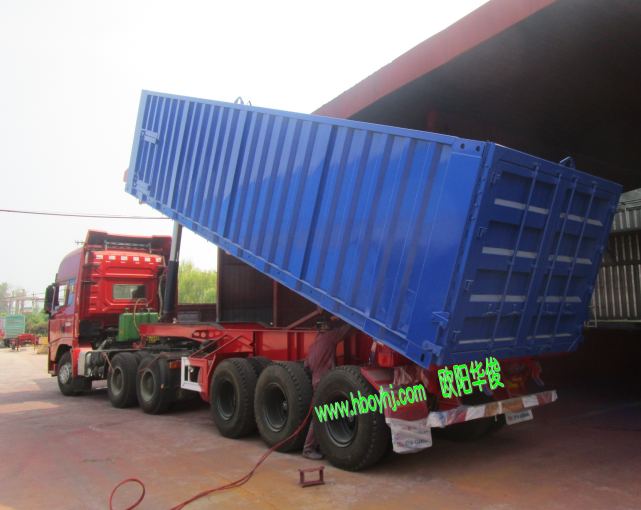 歐陽(yáng)華俊9.5米藍(lán)色集裝箱后翻自卸半掛車-圖3