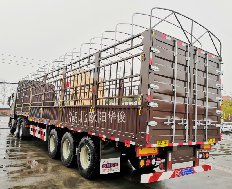 好消息:歐陽(yáng)華俊2019全新超輕型高欄半掛車(chē)隆重上市啦,自重6噸左右,能上叉車(chē)的超輕型高欄半掛車(chē)銷(xiāo)量火爆,新型合金式底板,此款底板的防水效果及抗壓效果都讓客戶很滿意。