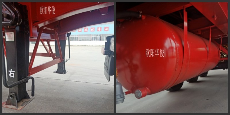 28T單動(dòng)支腿有效的支撐摘掛后半掛車前部載荷。水箱懸掛大梁中間有效節(jié)省占物空間,使用方便不礙事。