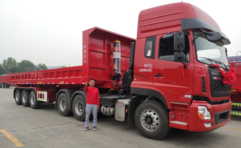 發布日期:2020-10-12 02:09:00 編輯:歐陽華俊 瀏覽量:1867現在后翻自卸半掛車需求與日俱增,恰恰證明了我國基礎建設的蓬勃發展,歐陽華俊做為半掛車生產廠家,深刻認識到了這種需求這種變化。生產后翻自卸半掛車合規車型,運載量大,運輸成本低,裝卸速度快,發家致富的小能手。荊門趙總遠道而來,喜提愛車,開心出發啦!
