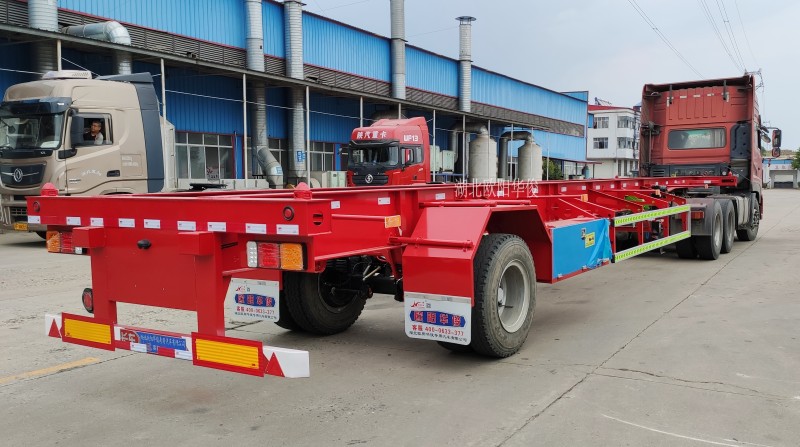歐陽華俊骨架式半掛車是在同類半掛車成熟結構基礎上,結合歐美優質半掛車設計理念研發的新結構產品,上裝可搭配集裝箱、卷簾、飛翼、冷藏車、散裝飼料車等使用,裝載方便,為客戶帶來更高的經濟效益。