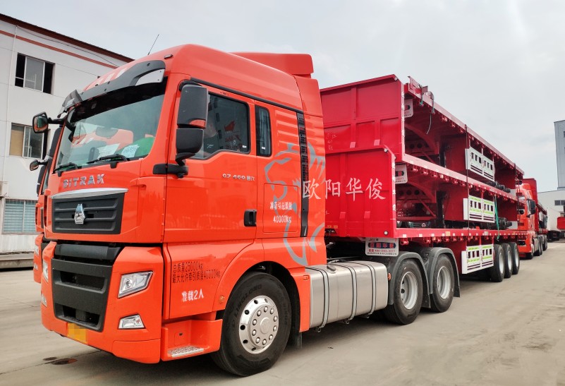 這不,10臺歐陽華俊13米直梁平板半掛車交付趙總,感謝全國的卡友們一如既往的對歐陽華俊的支持與厚愛。