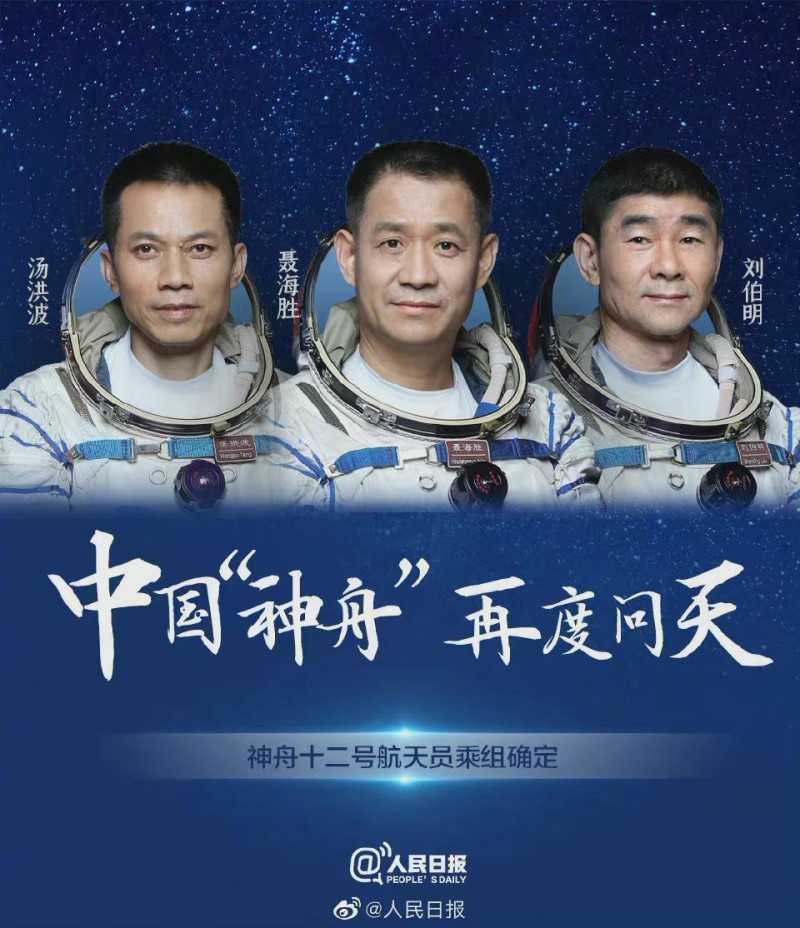 三名航天員中,特級航天員聶海勝參加過神舟六號、神舟十號載人飛行任務,特級航天員劉伯明參加過神舟七號載人飛行任務,二級航天員湯洪波是首次飛行。