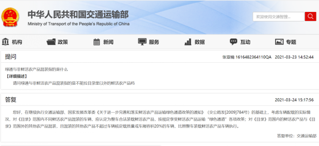 交通部回復(fù)中不享受綠通的農(nóng)產(chǎn)品: