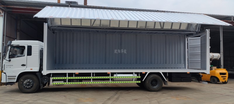飛翼車,也叫展翼車,翼展車,又叫雙翼車,單翼車,全稱翼開啟式廂式運輸車,飛翼車的車廂兩翼靠動力單元驅動能夠展開升起270度。飛翼車是國家工信部許可的運輸車型,華俊按公告打造合規飛翼車型。近日華俊一批次飛翼車交付十堰某物流公司,祝四節平安,四方來財! 基本配置: