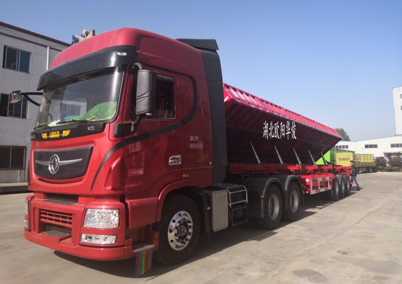 歐陽華俊今年推出精品輕量化13米側翻自卸半掛車,自重輕,價格實惠,在改進工藝和提高材質的同時,提質不提價,讓客戶用更實惠的價格擁有更優質的半掛車,實現廠家與客戶之間的雙贏。下面走近它看看吧! 自重6.77噸。外觀尺寸:13米(長)×2.55米(寬)×2.9米(高)