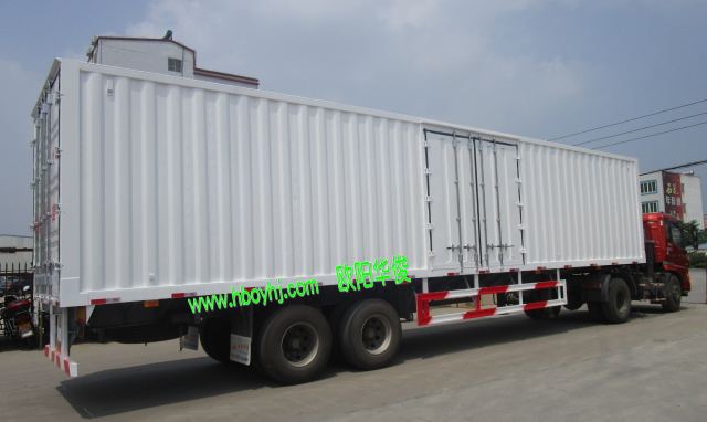 2臺13米2軸廂式半掛車完工交付,此集裝箱為以舊換新對換,箱子尺寸為13米長*2.55米寬*2.5米內高,右邊中間開一對門,客戶用來拉汽車配件。感謝武漢朋友對歐陽華俊掛車廠的支持,祝武漢吳總一路順風,生意興隆,順順利利! 廂式半掛車系列產品適用于家用電器、輕紡