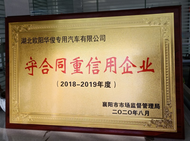 點贊!湖北歐陽華俊專用汽車有限公司榮獲“守合同重信用”企業(yè)稱號 2020-11-19
